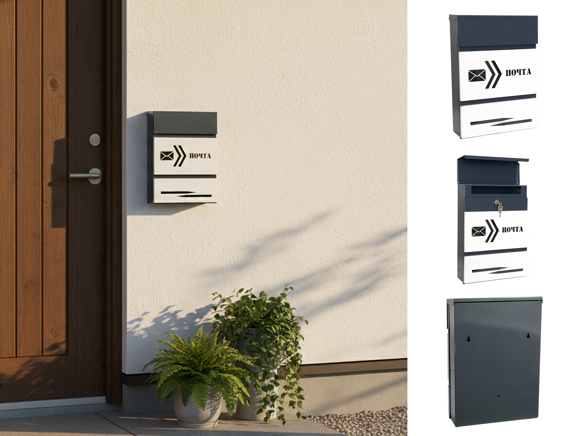 • Подходит для установки как внутри двора, так и снаружи. Отлично защищает корреспонденцию от воздействия окружающей среды, благодаря своему конструктиву.
